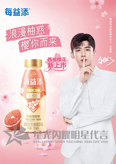 日前,青年演員白敬亭正式簽約成為每益添品牌全新活力代言人。品牌全新西柚櫻花味產(chǎn)品攜手白敬亭, 帶來300億獨家丹麥進(jìn)口菌種L.casei431持久呵護(hù)你的腸道健康。